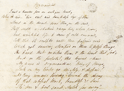 Call me Ozymandias (Shelley’s fair copy manuscript page illustrates this post) for my short-sightedness, impotence and irrelevancy in and to the universe.  Call me Ishmael.  Just don’t call me Milkman.